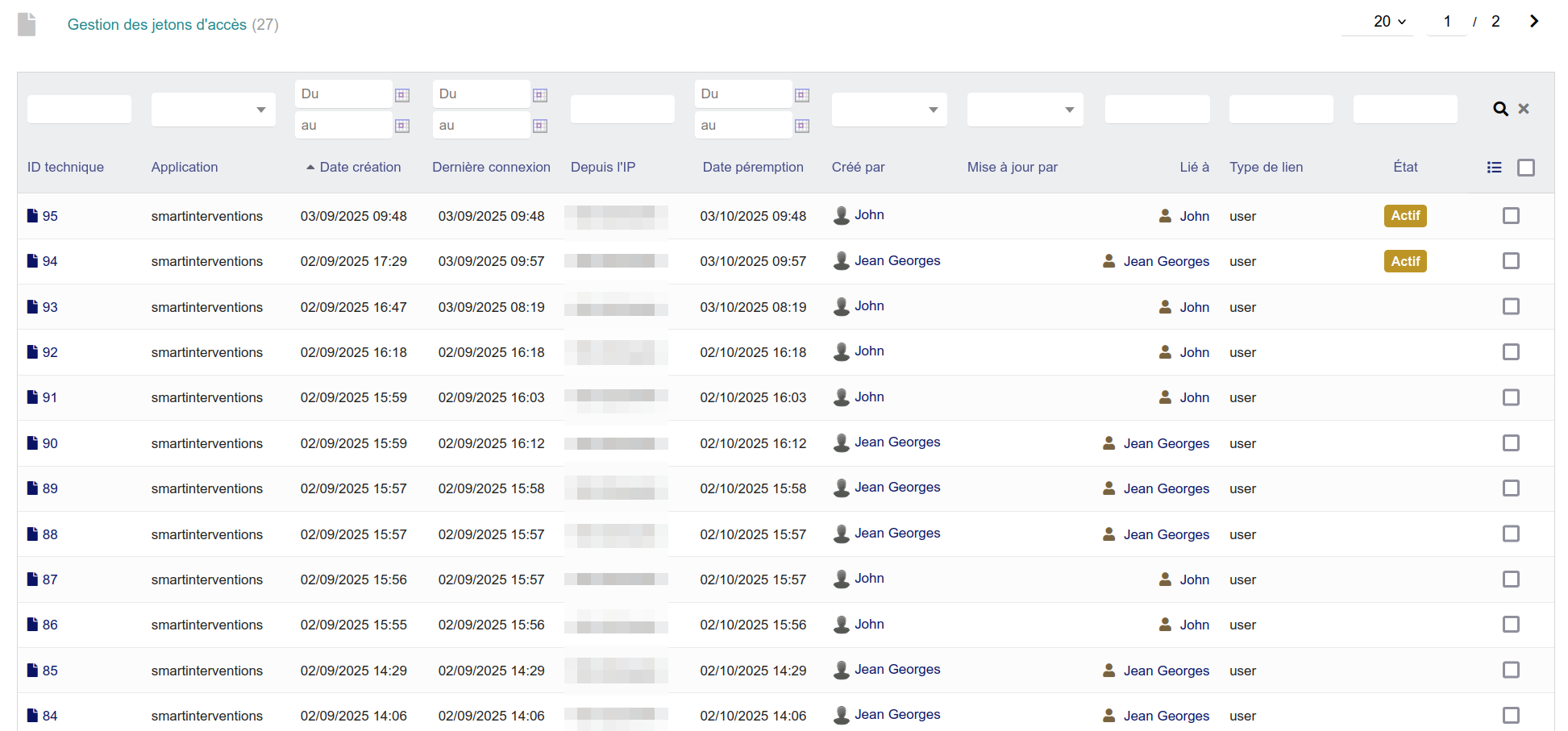 Vous aurez également accès aux journaux de connexion qui vous permettront de détecter des actions incorrectes et/ou de gérer les accès