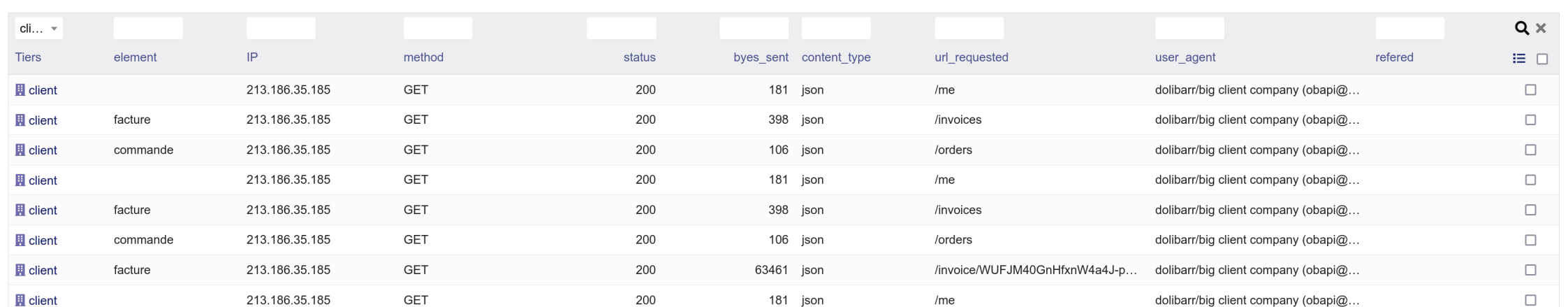 Nativement Dolibarr propose une API et chaque utilisateur peut disposer d'une seule clé d'API qui donne accès à tout le périmètre fonctionnel auquel l'utilisateur a accès.